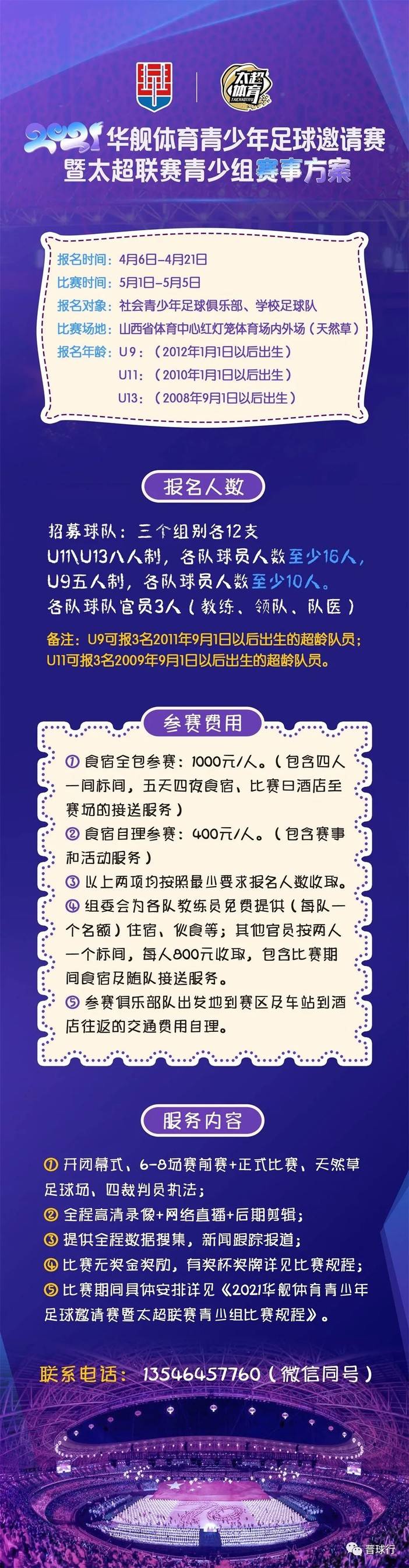 5月1日至5日,在山西省殿堂级足球场——山西省体育中心红灯笼体育场,2021华舰体育青少年足球邀请赛暨太超联赛青少组比赛将盛大开幕。华舰体育诚挚邀请全国各青训俱乐部、学校足球队参加本次比赛。