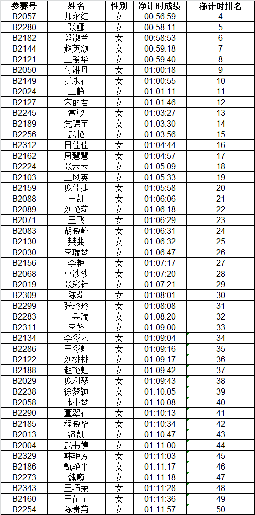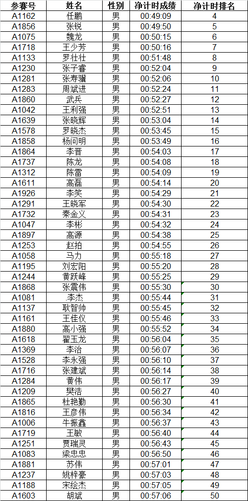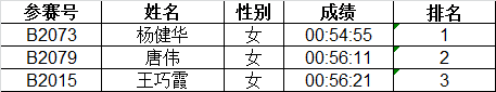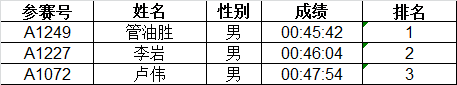 按枪声计时成绩录取男、女1-3名,4-50名按净计时有效成绩录取。赛后成绩公示10个工作日。