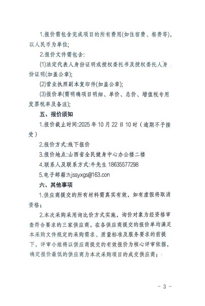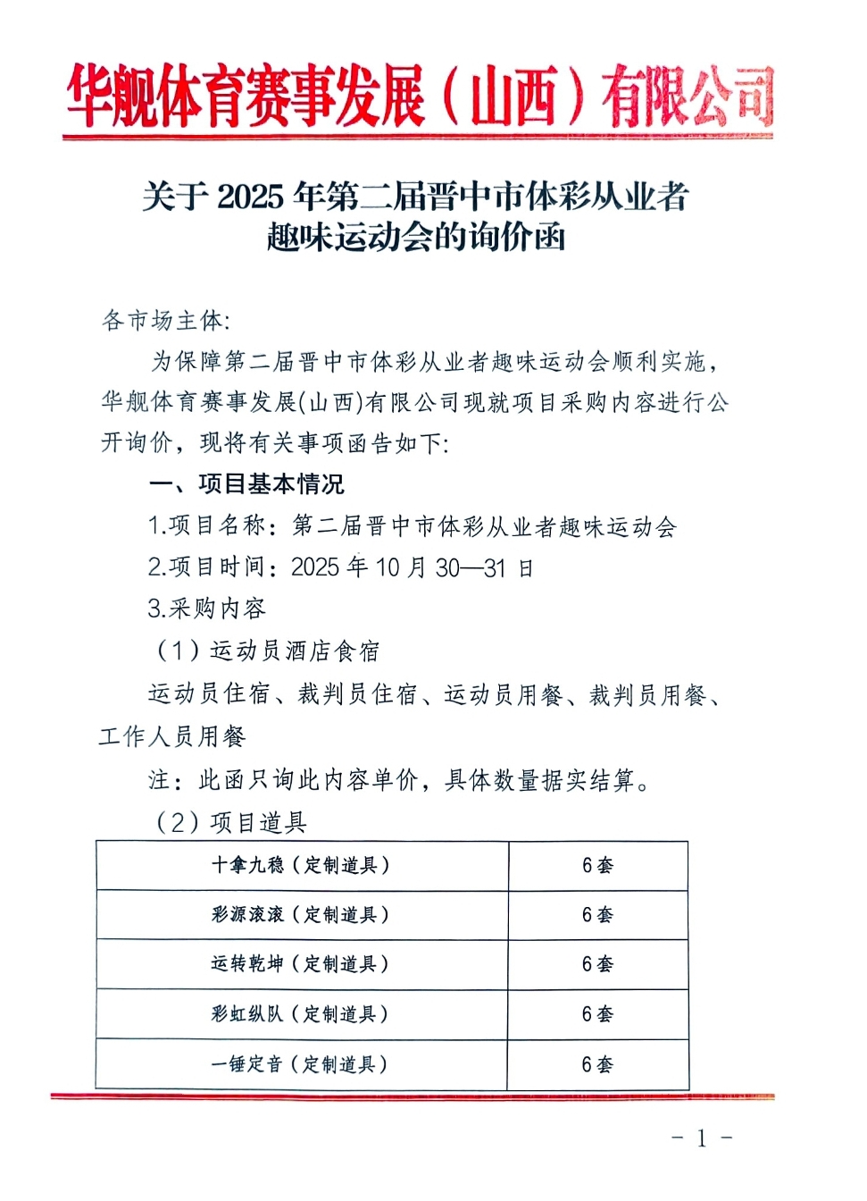 “怡然见晋中”系列赛体彩从业者运动会公开询价函